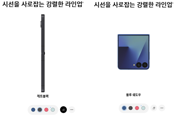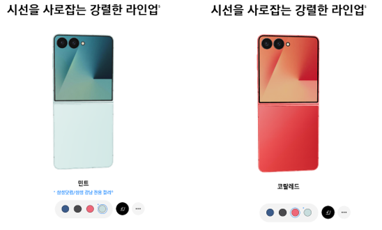 먼저, 갤럭시 Z 플립7의 경우, 블루 쉐도우, 코랄 레드, 제트 블랙 3종으로 출시되며, 삼성닷컴과 삼성 강남에서만 구매 가능한 전용 색상인 민트 컬러도 선보였습니다.