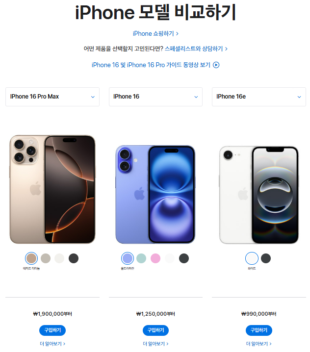 현재로서는 삼성에서 최근 공개한 갤럭시 시리즈의 가격대 보다 저렴한 가격입니다. 애플 아이폰 홈페이지를 검색해서 접속했을 때, 처음 보여지는 휴대폰 소개가 아이폰 16e로 가장 저렴한 가격대의 아이폰을 소비자들에게 보여줌으로써, 현재 나와있는 삼성 스마트폰 가격대 보다 약간 저렴하다는 인상을 줄 수 있는 것 같습니다.